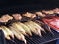 Albert barbecued a wonderful feast...ribs, chicken, hotdogs, pork and beans, corn on the cob...yummy. We forgot about the strawberries we had for desert, so we'll have those tonight.