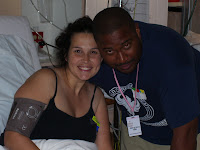 Albert was amazing during the labor and delivery. I was pretty darn mean to him (okay really mean to him) but he still took awesome care of me! My friend Ora was also able to be with us which I was thrilled about...having other women present is very helpful. It's so comforting to know that someone else knows exactly how it feels. And several times during contractions I would look over and see her there and remind myself that she had indeed lived through childbirth so maybe I would too....still at 7 centimeters I caved and got the epidural. I don't regret the decision in the least. I only wish it would have worked a little better for the actual delivery. It did an adequate job of releiving the pain of contractions (exept for on one side) but it left a lot to be desired as far as pain releif for the actual delivery part. I'll post the whole birth story later.