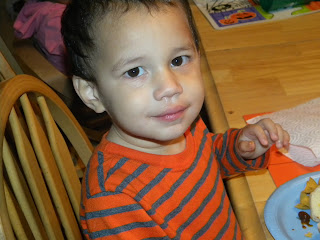 Monday night (their actual birthday) Albert's sister and her two little boys came over and we did cake and presents. We stuffed our scarecrow whom we affectionately call "Henry." We got Henry the year I had the twins, in fact, Henry was brought home (also interestingly, from Eckert's Bellevillle location) on the exact day I was at the never ending non stress test that resulted in bed rest for the remainder of the pregnancy. Every year we buy hay and stuff Henry for the fall holidays.