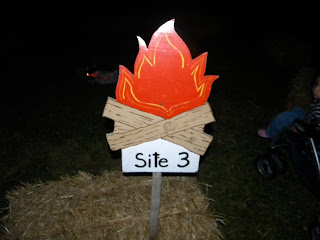 When it got dark we loaded up all the kids (babies too) on a tractor for a haunted hay ride. That was a big thrill for the kids. It was very scary with lots of special effects and guys dressed up in crazy costumes that jumped out from the vines and from behind pumpkins to chase the tractor. It was lots of fun. The babies were a little afraid. Brice was a lot afraid. Kambree was too small to care. After the haunted hay ride we headed over to the bon fire site that we had reserved and roasted hot dogs and made s'mores. The babies sat like angels in the lawn chairs we brought, snuggled under blankets eating their food (later, our chairs were covered in chocolate and marshmallow). It was a terrific night. I highly reccommend Eckert's to anyone. The bon fire was amazing. We sang to the babies and had a great time together as a family.