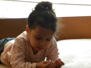 Of course, this isn't to say that she's NOT also a Daddy's girl- she is....its just that she's a bit more of a Mama's girl. Although, her loyalties can be "bought" fairly easily for the low, low cost of whatever you might be snacking on or drinking that she wants a bite or sip of. So for example, Daddy may be able to pull her away from Mommy's lap by offering say, a Dorito, and Mommy may be able to lure her back with a sip of sweet tea! So maybe she just really knows how to play us both!