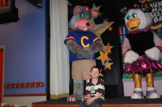 Watching Chuck E. and friends sing...Isaiah was a bit nervous about Chuck E.
