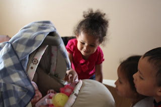 I LOVE the photo of you holding her with all the little ones around you! What a blessed life you have!
