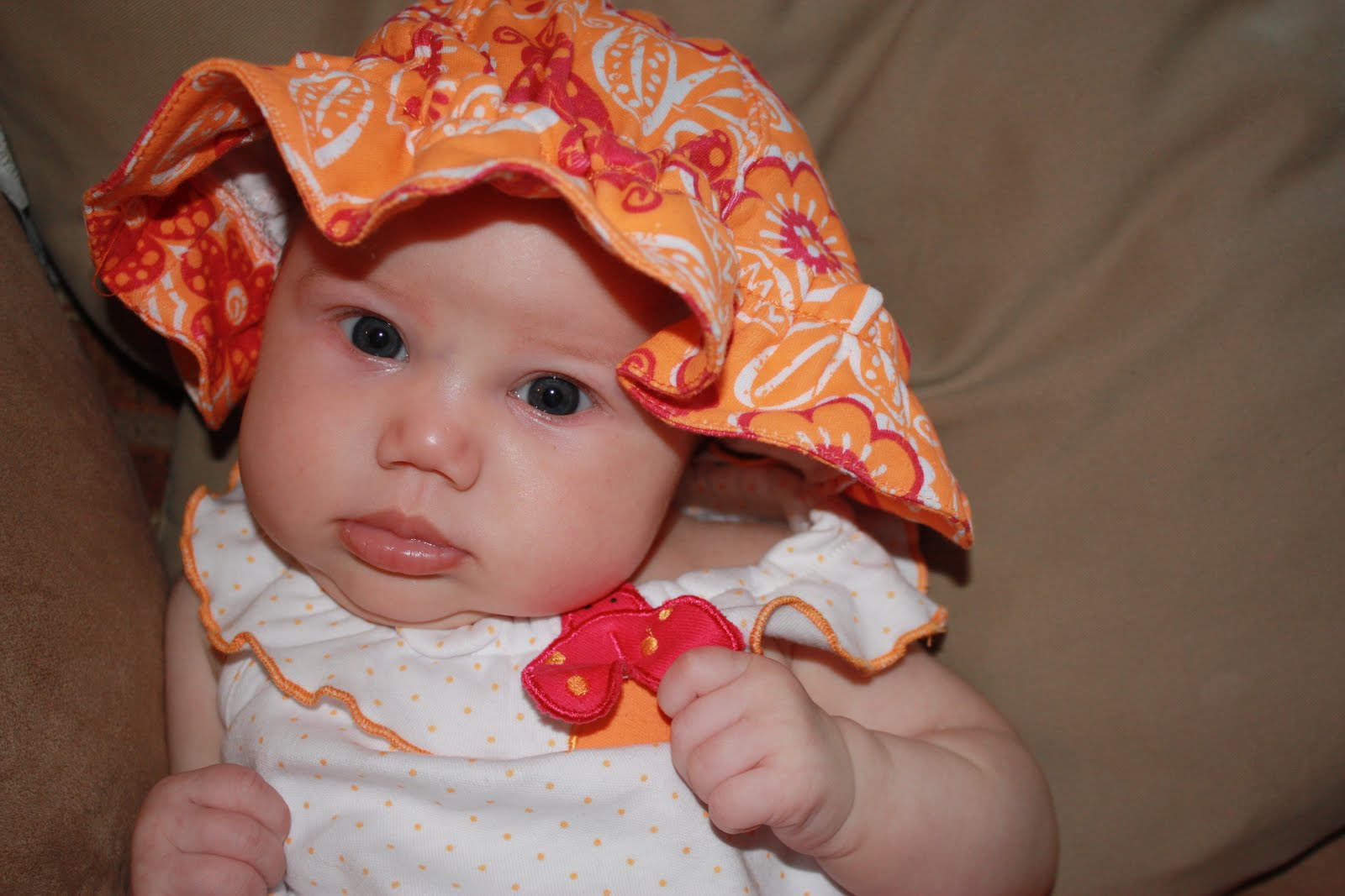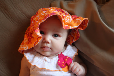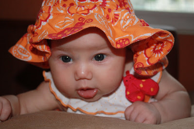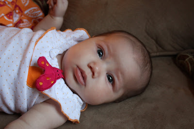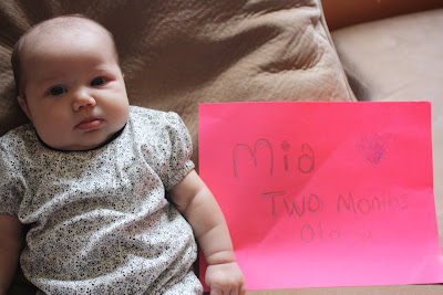 When we got home, I couldn't help snapping a billion pictures of Mia in her orange outfit. It's so cute, I love it. I posted a few of them for you all to see. Plus a pic of her on the day she turned two months old with her little sign. Such a fun tradition that I copied from a couple of the much more creative mommies in my online playroom. Enjoy!