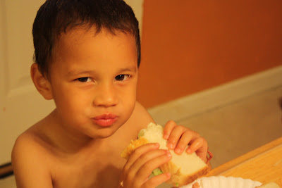 Sandwiches are ready to be passed to the littles. I make them as I cook. As the first batch of bacon is done, I slap it on the bread and put it in front of a little one...