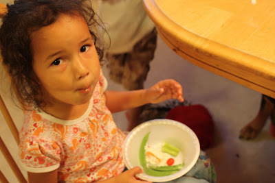 Littles get fed first...as in the minute the bacon is out of the skillet,so that they can go to bed first....and the rest of us can eat, talk, finish up homework, chores, or just chill. In peace.