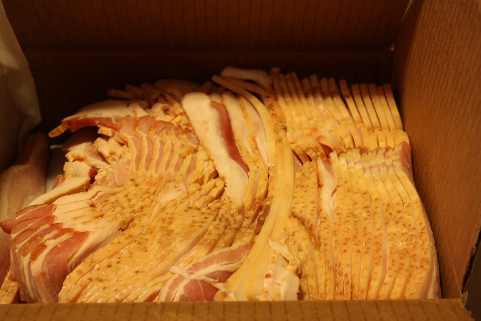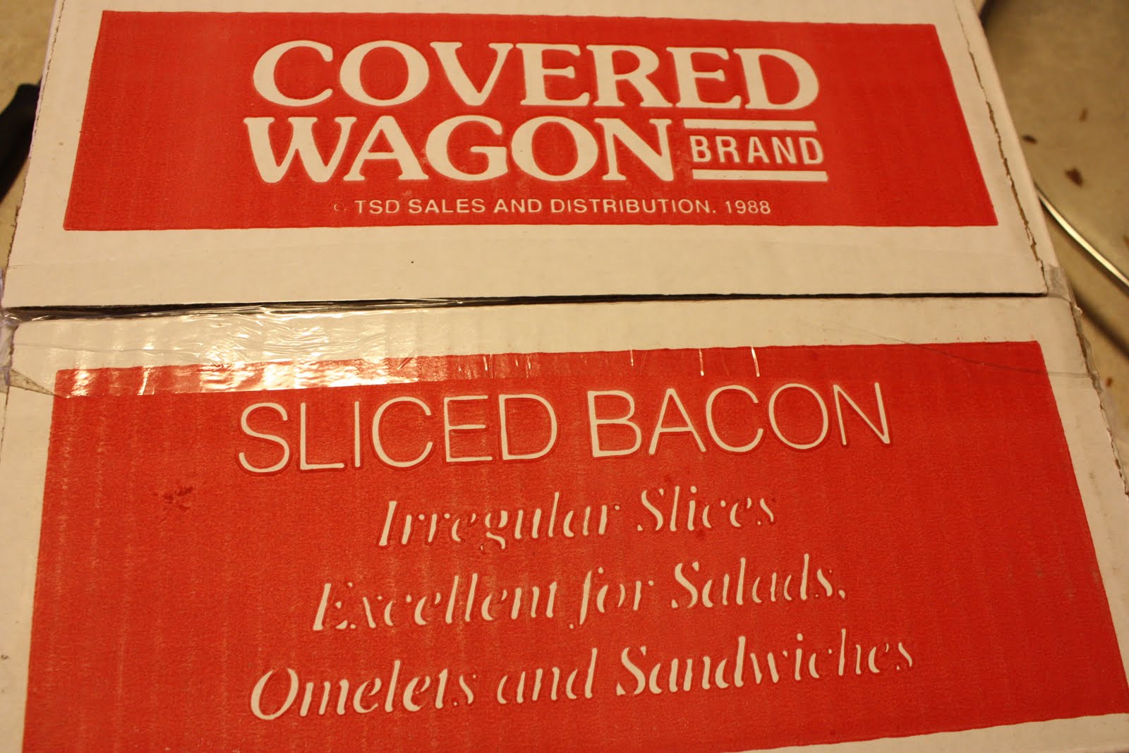 Because making BLT's for a dozen people (and it turned out to be 13, tonight) takes quite a bit of bacon, I buy it in the box from our local grocery store. The box is a a bit pricey...seventeen bucks to be exact, but still a deal for me, as by the time I purchase enough packs to feed the crowd (remembering that all except the littles will certainly eat at least two sandwiches) I'd easily spend at least that much, if not more. Plus, the box of bacon is great for sandwiches. See? It says so...right here on the box.