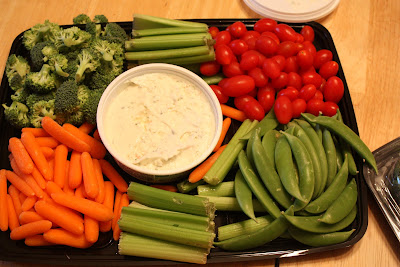 My kids (and hubby) have the habit of "picking off" pieces of bacon as I cook them. Meaning, as a fresh batch comes out and is placed on the plate beside my work station, little (and big) hands have a tendency to happen by and pop a piece into their mouths. With a family this size, you can see how quickly this can lead to disaster! If I don't intervene, we'd sometimes never make it to the sandwich part of the BLT's. I guess it'd just be B's for dinner. Anyhow, I've come up with the solution. Now, I put out a little veggie tray (or most often two) to keep little (and big) hands and mouths occupied (and away from the bacon until dinner is ready). It's healthier, and sometimes fills the kids enough so that come dinner, they don't feel the need to consume 4 1/2 BLT's. Wish I could claim the same for myself...by anyway...